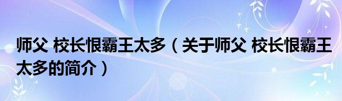 本文關于師父 校長恨霸王太多的簡介就講解完畢,希望對大家有所幫助。