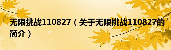 本文關于無限挑戰110827的簡介就講解完畢,希望對大家有所幫助。