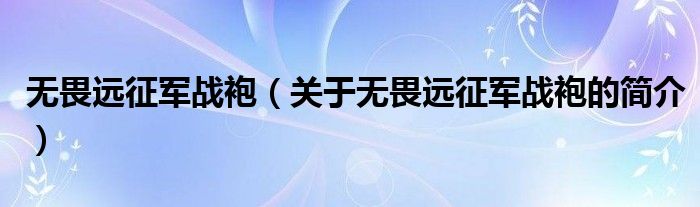 大家好,無畏遠征軍戰袍,關于無畏遠征軍戰袍的簡介很多人還不知道,現在讓我們一起來看看吧!