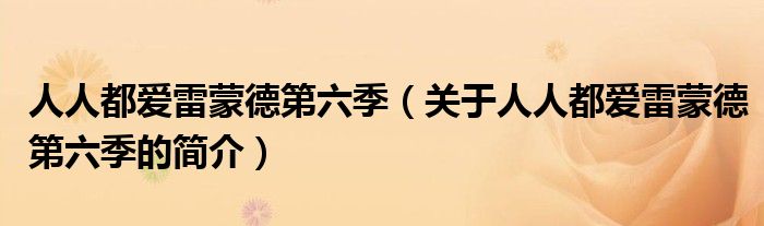 大家好,人人都愛雷蒙德第六季,關(guān)于人人都愛雷蒙德第六季的簡介很多人還不知道,現(xiàn)在讓我們一起來看看吧!
