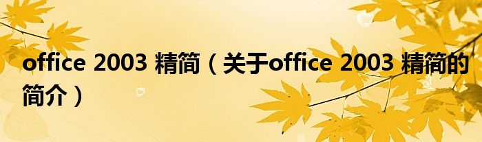大家好,office 2003 精簡,關于office 2003 精簡的簡介很多人還不知道,現在讓我們一起來看看吧!
