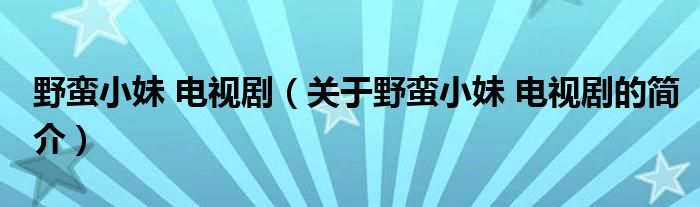 本文關(guān)于野蠻小妹 電視劇的簡(jiǎn)介就講解完畢,希望對(duì)大家有所幫助。