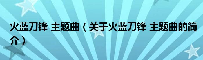 本文關于火藍刀鋒 主題曲的簡介就講解完畢,希望對大家有所幫助。