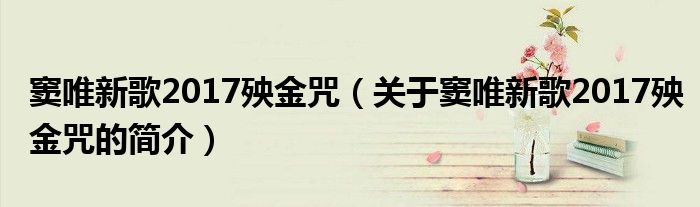 本文關于竇唯新歌2017殃金咒的簡介就講解完畢,希望對大家有所幫助。