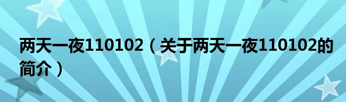 本文關(guān)于兩天一夜110102的簡(jiǎn)介就講解完畢,希望對(duì)大家有所幫助。