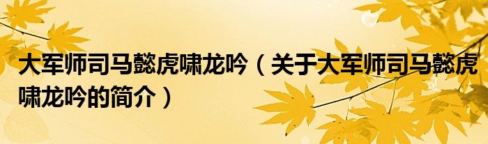 本文關(guān)于大軍師司馬懿虎嘯龍吟的簡(jiǎn)介就講解完畢,希望對(duì)大家有所幫助。