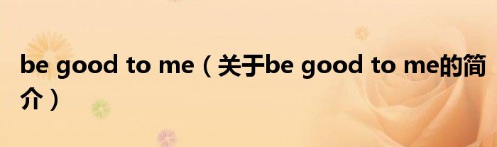 本文關于be good to me的簡介就講解完畢,希望對大家有所幫助。