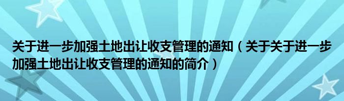 本文關于關于進一步加強土地出讓收支管理的通知的簡介就講解完畢,希望對大家有所幫助。