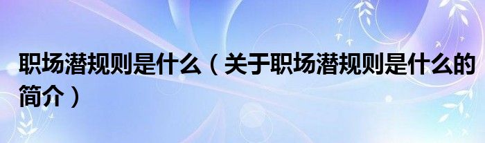 本文關于職場潛規則是什么的簡介就講解完畢,希望對大家有所幫助。