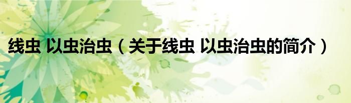 本文關于線蟲 以蟲治蟲的簡介就講解完畢,希望對大家有所幫助。