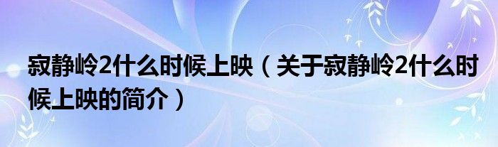 大家好,寂靜嶺2什么時候上映,關于寂靜嶺2什么時候上映的簡介很多人還不知道,現在讓我們一起來看看吧!