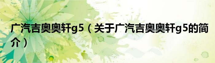 本文關于廣汽吉奧奧軒g5的簡介就講解完畢,希望對大家有所幫助。