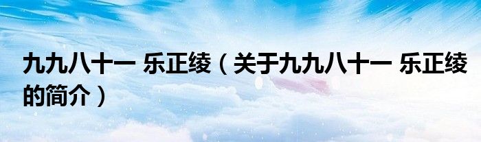 本文關于九九八十一 樂正綾的簡介就講解完畢,希望對大家有所幫助。