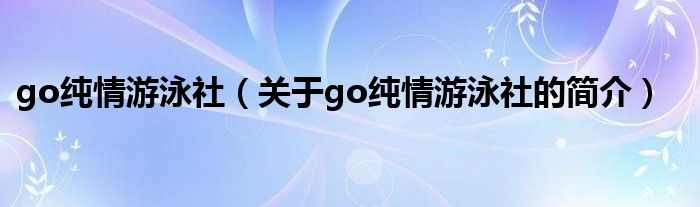 大家好,go純情游泳社,關于go純情游泳社的簡介很多人還不知道,現在讓我們一起來看看吧!