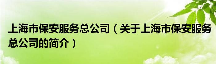 本文關于上海市保安服務總公司的簡介就講解完畢,希望對大家有所幫助。