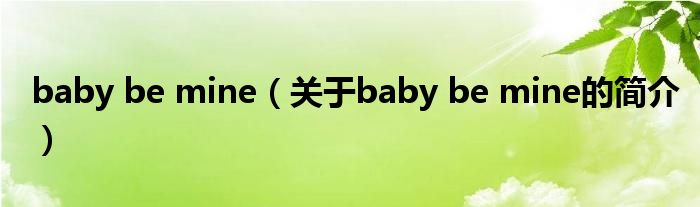 大家好,baby be mine,關于baby be mine的簡介很多人還不知道,現在讓我們一起來看看吧!