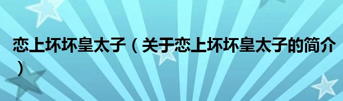 本文關于戀上壞壞皇太子的簡介就講解完畢,希望對大家有所幫助。
