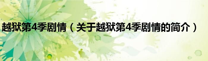 大家好,越獄第4季劇情,關于越獄第4季劇情的簡介很多人還不知道,現在讓我們一起來看看吧!
