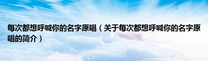 大家好,每次都想呼喊你的名字原唱,關于每次都想呼喊你的名字原唱的簡介很多人還不知道,現在讓我們一起來看看吧!