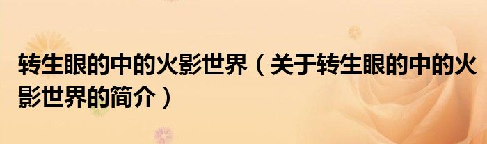 本文關(guān)于轉(zhuǎn)生眼的中的火影世界的簡介就講解完畢,希望對大家有所幫助。