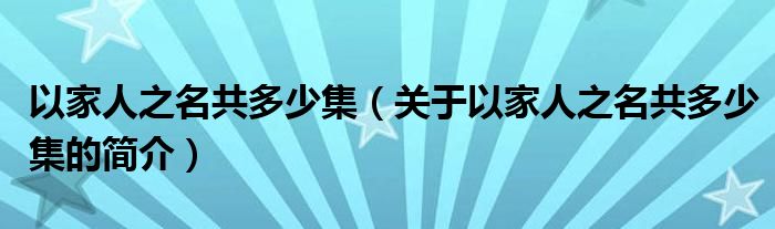 本文關于以家人之名共多少集的簡介就講解完畢,希望對大家有所幫助。