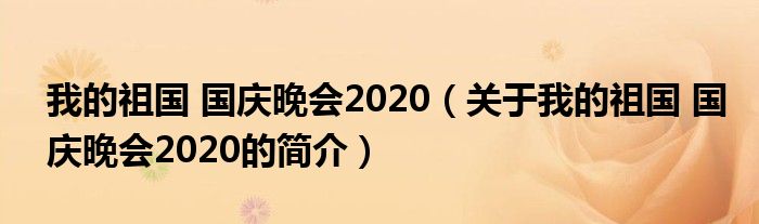 本文關于我的祖國 國慶晚會2020的簡介就講解完畢,希望對大家有所幫助。