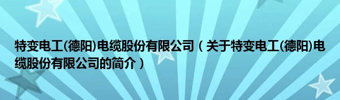 本文關于特變電工(德陽)電纜股份有限公司的簡介就講解完畢,希望對大家有所幫助。