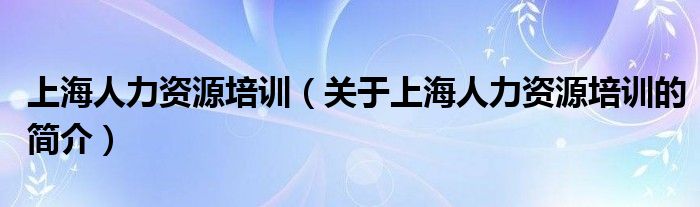 本文關于上海人力資源培訓的簡介就講解完畢,希望對大家有所幫助。