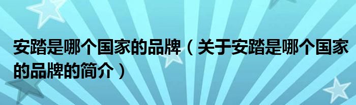 本文關(guān)于安踏是哪個國家的品牌的簡介就講解完畢,希望對大家有所幫助。