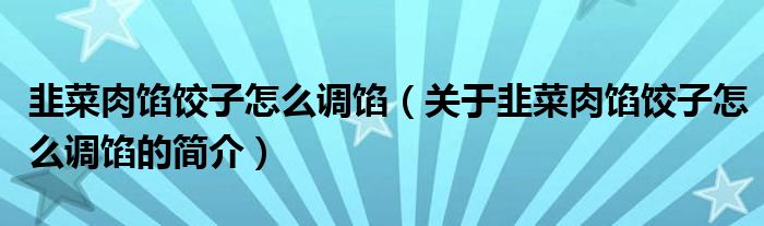 本文關于韭菜肉餡餃子怎么調餡的簡介就講解完畢,希望對大家有所幫助。