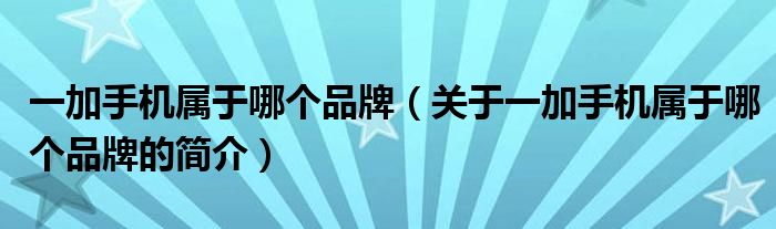 大家好,一加手機(jī)屬于哪個(gè)品牌,關(guān)于一加手機(jī)屬于哪個(gè)品牌的簡(jiǎn)介很多人還不知道,現(xiàn)在讓我們一起來看看吧!