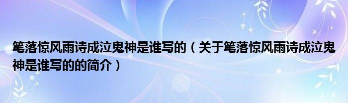 本文關于筆落驚風雨詩成泣鬼神是誰寫的的簡介就講解完畢,希望對大家有所幫助。