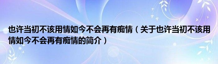 本文關于也許當初不該用情如今不會再有癡情的簡介就講解完畢,希望對大家有所幫助。