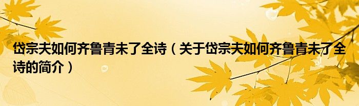 本文關于岱宗夫如何齊魯青未了全詩的簡介就講解完畢,希望對大家有所幫助。