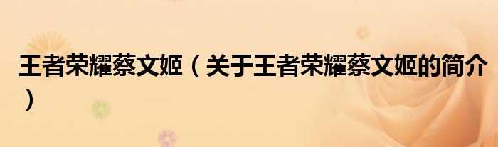 本文關于王者榮耀蔡文姬的簡介就講解完畢,希望對大家有所幫助。