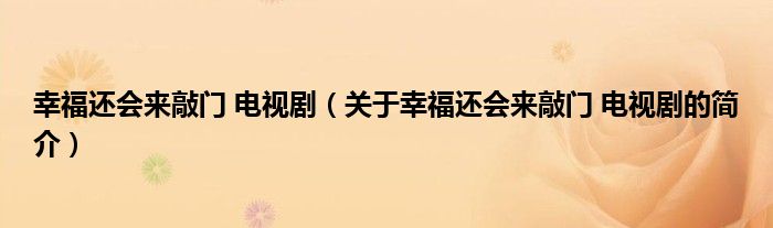 大家好,幸福還會來敲門 電視劇,關于幸福還會來敲門 電視劇的簡介很多人還不知道,現在讓我們一起來看看吧!