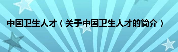 大家好,中國衛生人才,關于中國衛生人才的簡介很多人還不知道,現在讓我們一起來看看吧!