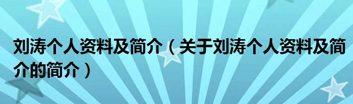 本文關于劉濤個人資料及簡介的簡介就講解完畢,希望對大家有所幫助。