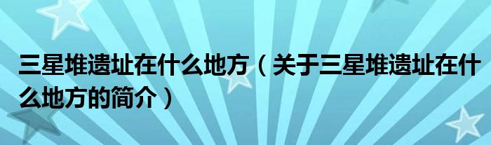 本文關(guān)于三星堆遺址在什么地方的簡介就講解完畢,希望對(duì)大家有所幫助。