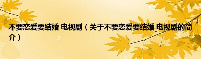 本文關于不要戀愛要結婚 電視劇的簡介就講解完畢,希望對大家有所幫助。