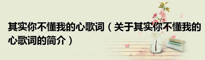 大家好,其實你不懂我的心歌詞,關于其實你不懂我的心歌詞的簡介很多人還不知道,現在讓我們一起來看看吧!