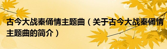 本文關(guān)于古今大戰(zhàn)秦俑情主題曲的簡(jiǎn)介就講解完畢,希望對(duì)大家有所幫助。