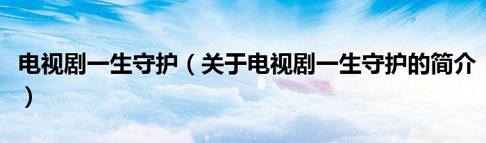 本文關于電視劇一生守護的簡介就講解完畢,希望對大家有所幫助。
