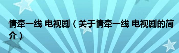 本文關于情牽一線 電視劇的簡介就講解完畢,希望對大家有所幫助。