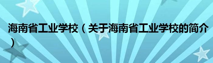 大家好,海南省工業學校,關于海南省工業學校的簡介很多人還不知道,現在讓我們一起來看看吧!