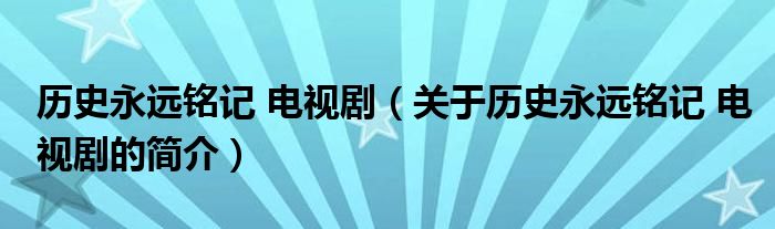 本文關于歷史永遠銘記 電視劇的簡介就講解完畢,希望對大家有所幫助。