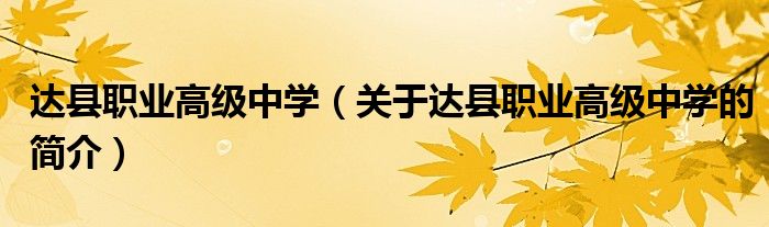大家好,達縣職業高級中學,關于達縣職業高級中學的簡介很多人還不知道,現在讓我們一起來看看吧!