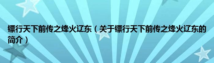 本文關于鏢行天下前傳之烽火遼東的簡介就講解完畢,希望對大家有所幫助。