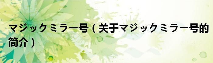 本文關于マジックミラー號的簡介就講解完畢,希望對大家有所幫助。