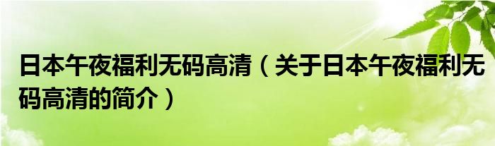本文關于日本午夜福利無碼高清的簡介就講解完畢,希望對大家有所幫助。
